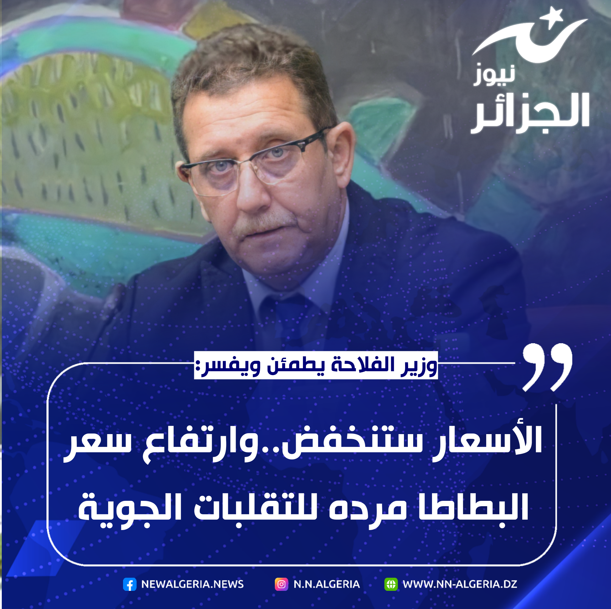 وفيما يتعلق بأسعار البطاطا التي تجاوزت 100 دج في بعض الأحياء، أرجع الوزير الأمر إلى الأمطار التي تساقطت خلال الأسبوع الماضي والتي عرقلت عمليات الجني غير أنه لاحظ أن ارتفاع الأسعار يعود خاصة إلى المضاربين الذين يستغلون مثل هذه المناسبات الأسعار.