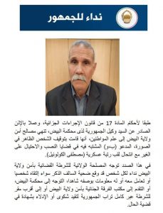 وأفادت شرطة البيض في نداء للجمهور، أن الموقوف انتحل لقب رتبة عسكرية “مصطفى كولونيل”، ودعت كل من وقع ضحية للموقوف التقدم إليها أو إلى أي مركز شرطة في التراب الوطني لتقديم شهادته.