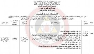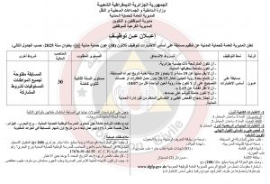 أعلنت المديرية العامة للحماية المدنية عن تنظيم مسابقة على أساس الاختبارات لتوظيف (2000) عون الحماية المدنية بعنوان سنة 2025 منها، 1970 عون حماية مدنية ذكور لصالح مديريات الحماية المدنية لولايات القطر الوطني، و30 عون حماية مدنية إناث.
