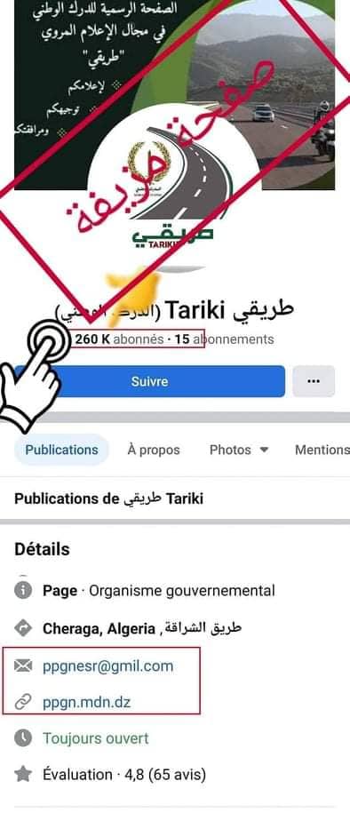 نبهت صفحة “طريقي” التابعة لقيادة الدرك الوطني، إلى وجود صفحات مزيفة على الفايسبوك تنتحل اسم وشعار الصفحة وتقدم أخبارا مزيفة ومغلوطة.