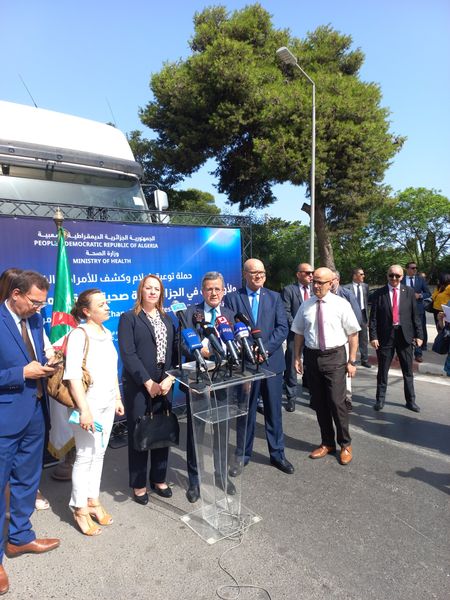 وأكد الوزير أن هذه القافلة التحسيسية والتوعوية للكشف عن داء السكري ومضاعفاته بدعم من العيادة المتنقلة ” قافلة السكري” « Driving Diabetes »، أتت بعد العديد من القوافل التي أطلقتها وزارة الصحة مع مختلف الشركاء، مضيفا بأن “وزارة الصحة، من خلال مديريات الولايات، تقوم بتنظيم هذه القوافل المتنقلة منذ 2011 في إطار الشراكة مع مخابر “نوفو نورديسك”، حيث تم إجمالا تنفيذ 35 حملة مكّنت من فحص ما يقارب من 60.000 مريض”.