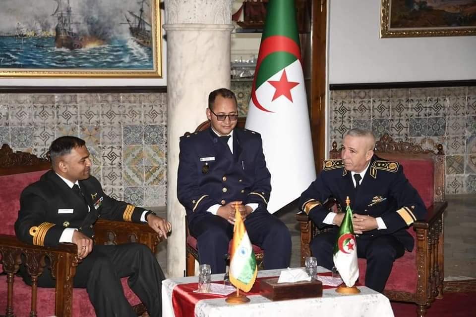 وبمقر القاعدة البحرية بالجزائر بالناحية العسكرية الأولى، قام قائد الطواف الهندي رفقة ممثل السفارة الهندية بالجزائر، بزيارة مجاملة للعميد قائد الواجهة البحرية الوسطى.