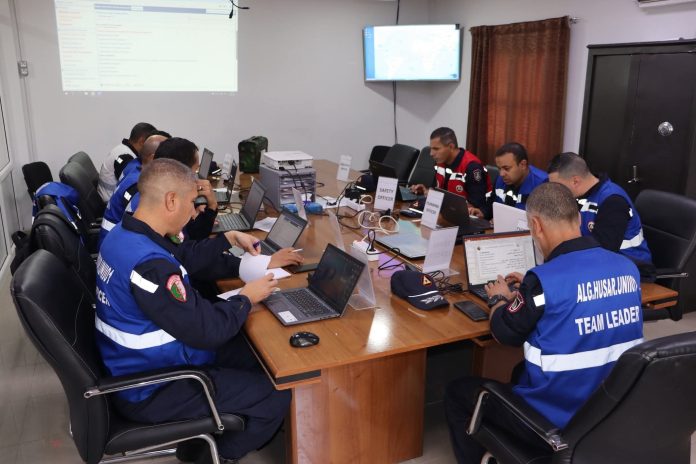 وأفاد نفس المصدر أن “التمرين التمثيلي الذي يندرج في إطار إعادة التصنيف المرتقب لسنة 2026، وضمن الاستعدادت فريق البحث والإنقاذ في الأماكن الحضرية الجزائرية، انطلق على الساعة السابعة صباحا ويتمثل في زلزال ضرب المنطقة الإفتراضية “ايكوزيوم” قدر بـ 7.5 على سلم الرشتر خلف خسائر مادية وبشرية”.