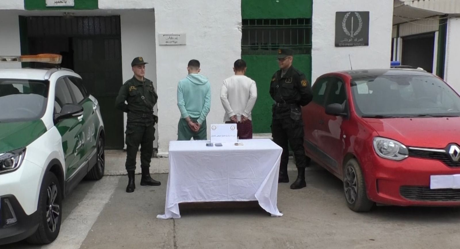 وأوضح المصدر ذاته أنه “على إثر تداول مقطع فيديو على مواقع التواصل الاجتماعي يظهر فيه شخص يقوم بسرقة سيارة من داخل مرآب مسكن بحي الحميز, مع جر مالكتها التي كانت متشبثة بالباب الأمامي لنافذة السيارة, باشر أفراد الفرقة الإقليمية للدرك الوطني بالحميز التحقيق في القضية, ليتم تحديد هوية المشتبه فيهم ومكان تواجدهم, حيث تم وضع خطة أمنية محكمة”.