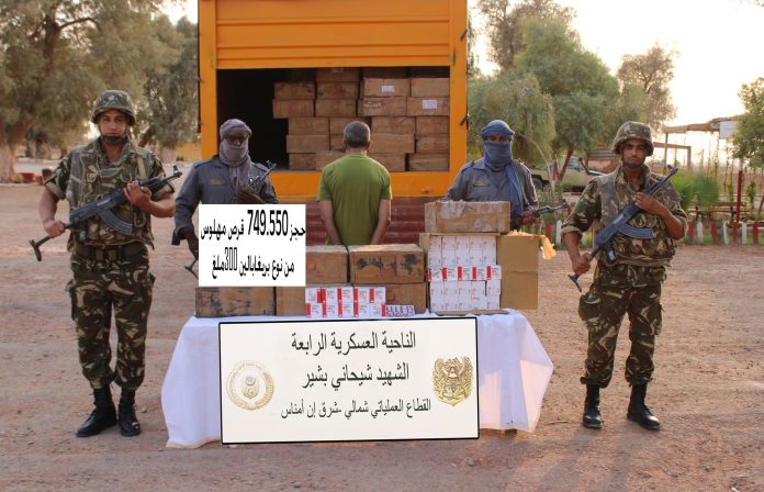 في حين تم توقيف (13) شخصا آخر وضبط مسدس (1) آلي (5) بنادق صيد و(25.040) لتر من الوقود، بالإضافة إلى (10) قناطير من مادة التبغ و (3,34) طن من المواد الغذائية الموجهة للتهريب والمضاربة، وهذا خلال عمليات متفرقة.