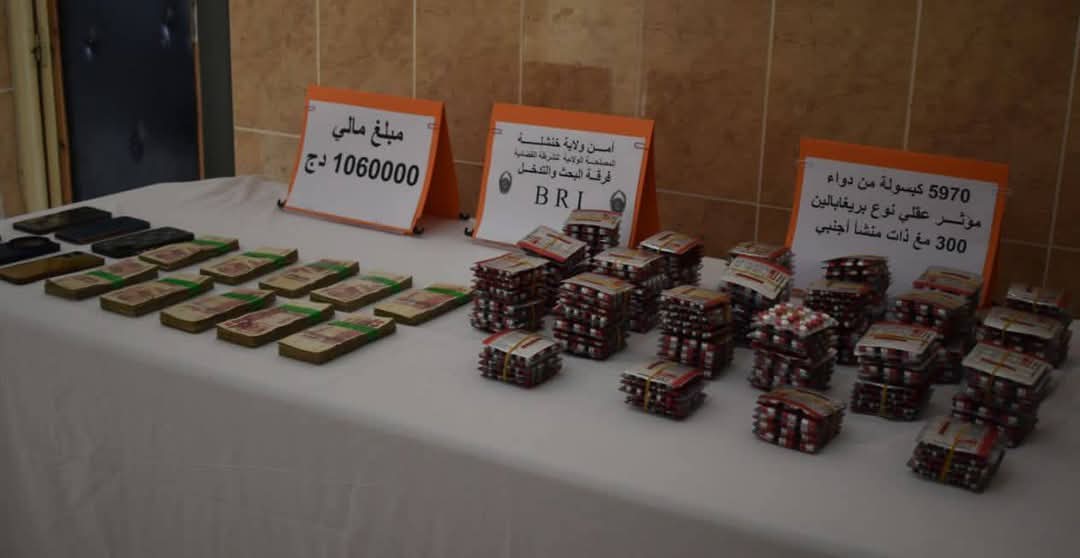 واستنادا إلى ذات المصدر فإن تفاصيل العملية الأولى تعود إلى ورود معلومات إلى عناصر فرقة البحث والتدخل بأمن ولاية خنشلة تفيد بوجود مجموعة إجرامية بصدد تمرير كمية معتبرة من المؤثرات العقلية على متن مركبتين قادمتين من إحدى الولايات الجنوبية المجاورة ليتم بالتنسيق مع عناصر الجيش الشعبي الوطني بالقطاع العسكري بخنشلة إعداد خطة أمنية تم على إثرها توقيف السيارة السياحية والشاحنة المشتبه فيهما وبإخضاع المركبتين اللتين كان على متنهما 4 أشخاص تتراوح أعمارهم بين 17 و 45 سنة للتفتيش الدقيق تم ضبط وحجز 5970 كبسولة من المؤثرات العقلية كانت مخبأة بإحكام ومبلغ مالي يقدر ب 1,6 مليون دج ليتم تحويل الموقوفين والمحجوزات إلى مقر الفرقة لاستكمال التحقيقات.