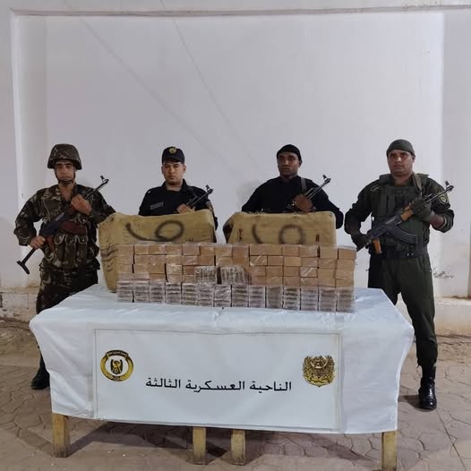 وجاء في بيان لمصالح الجمارك “في إطار التنسيق الميداني المشترك بين مصالح الجمارك ومختلف الأجهزة الأمنية، تمكنت الفرقة المتنقلة للجمارك التابعة لمفتشية أقسام الجمارك بأدرار، بالتعاون مع أفراد الجيش الوطني الشعبي الدرك الوطني، والأمن الوطني، من حجز كمية معتبرة من المخدرات تقدر بـ 51,200 كيلوغرام من الكيف المعالج، كانت مخبأة داخل مستثمرة فلاحية”.