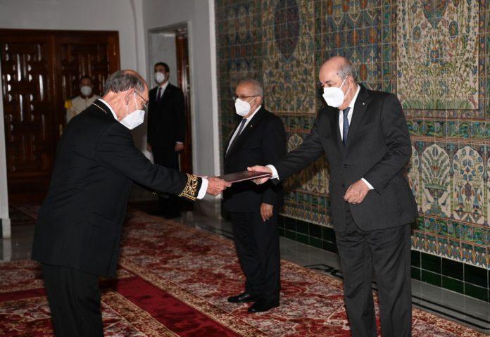 تسلم رئيس الجمهورية، عبد المجيد تبون، اليوم الخميس، أوراق اعتماد 4 سفراء جدد لدى الجزائر.