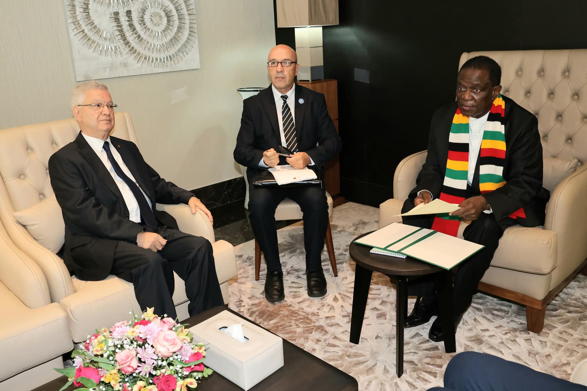 أدى كل من رئيس مجلس الأمة، عزوز ناصري، ورئيس المجلس الشعبي الوطني، إبراهيم بوغالي، زيارة مجاملة لرئيس جمهورية زيمبابوي، إيمرسون دامبودزو منانغاغوا، بمقر إقامته بزرالدة.