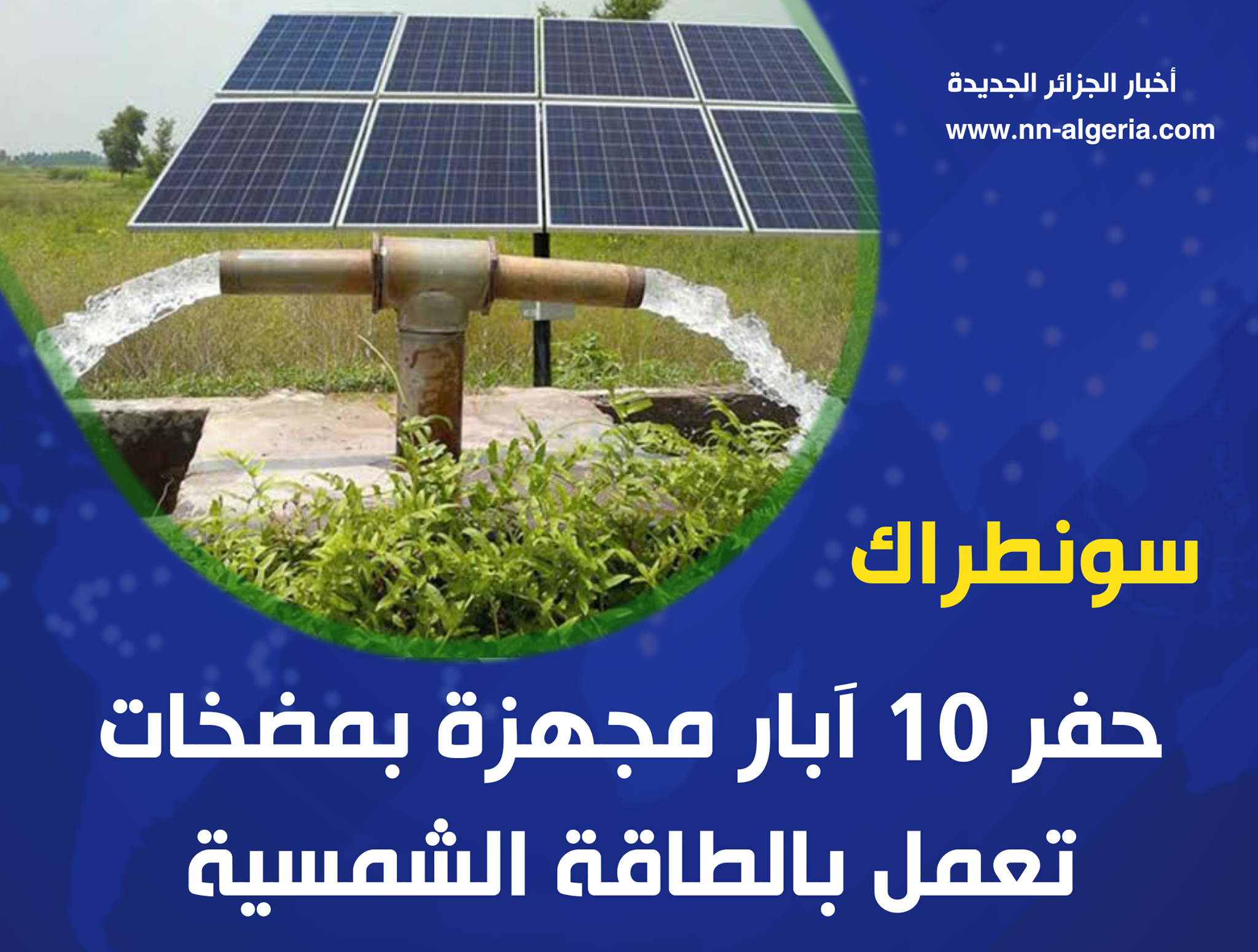 أعلنت الشركة الوطنية للمحروقات “سوناطراك” عن بحفر عشرة آبار مجهزة بمضخات تعمل بالطاقة الشمسية على طول حافة واد يتل بمنطقة البعاج ولاية الوادي.