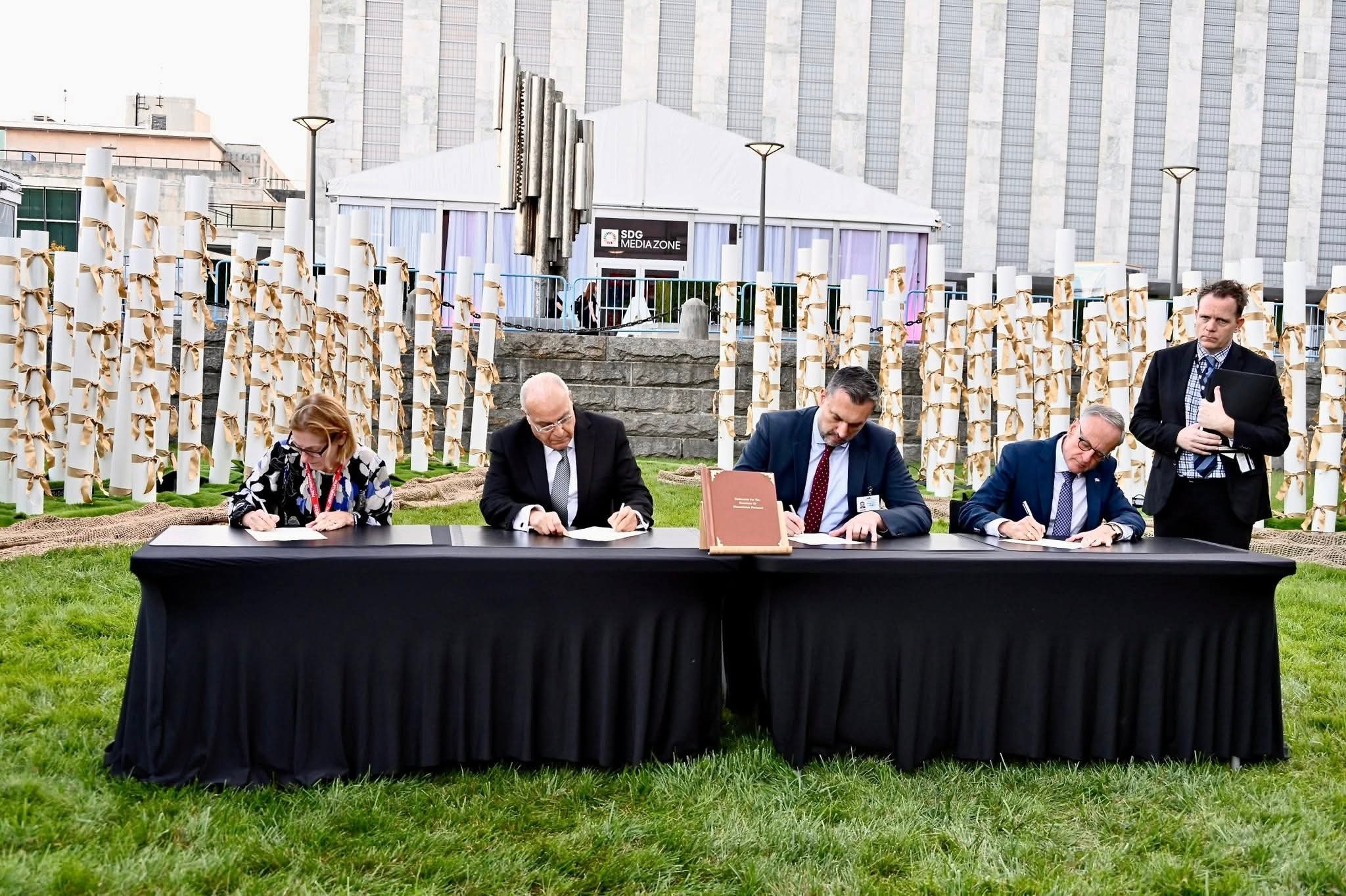 وأوضح البيان أنه في إطار تمثيله للجزائر في أشغال الشق رفيع المستوى للدورة الثمانين للجمعية العامة للأمم المتحدة, شارك وزير الدولة, وزير الشؤون الخارجية والجالية الوطنية بالخارج والشؤون الإفريقية, السيد أحمد عطاف, بنيويورك, في مراسم الإطلاق الرسمي للإعلان العالمي لحماية العاملين الإنسانيين .