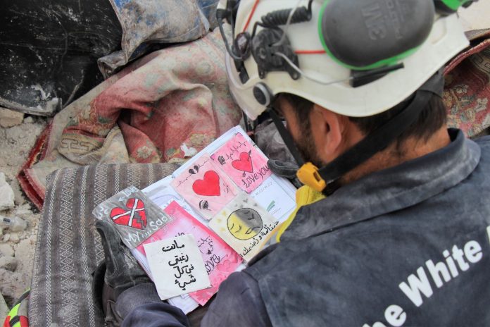 عثر عمال الإنقاذ التابعين للخوذ البيضاء، الذين يبحثون عن ناجين تحت الأنقاض في شمال سوريا بعد الزلزال المدمر، على يوميات كتبها طفلة يبدو أنها لا تزال مفقودة تحت الأنقاض.