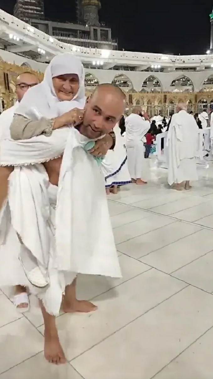 وفي تفاصيل الفيديو، ظهر الرجل وهو يحاول حمل والدته للطواف بها أمام الكعبة وهو ما نجح فيه، ومن ضمن التعليقات التي جاءت على الفيديو: «الله يكتب لهم الآجر، وما الوالدين إلا بوابة توصلنا إلى رضاء الله عنا ودخول الجنة.. إن احسنا له».