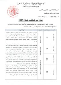 وحسب ما أفادت به الوزارة الوصية، يخص التوظيف رتب: وكيل أوقاف رئيسي، وكذا وكيل أوقاف، بالإضافة إلى منصب مرشدة دينية رئيسية، ومرشدة دينية.