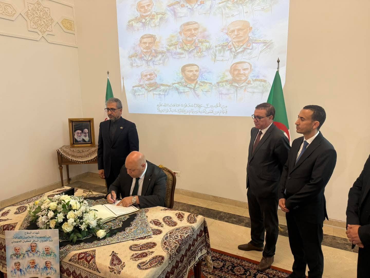 باسم رئيس الجمهورية السيد عبد المجيد تبون، وقّع وزير المجاهدين وذوي الحقوق العيد ربيقة، أمس على سجل التعازي بمقر سفارة الجمهورية الإسلامية الإيرانية بالجزائر، معزيا في ضحايا العدوان الأخير الذي شنه الكيان الصهيوني، وأدى إلى استشهاد عدد من المسؤولين والعلماء والمواطنين الأبرياء.
