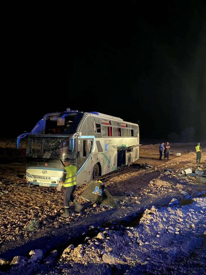 وأفادت مصالح الدرك الوطني، أن الحادث نجم عن إنقلاب حافلة لنقل المسافرين بالطريق الوطني رقم 06 على مستوى قرية مصباح بلدية الخيثر.