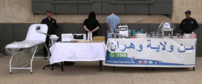 وبعد مراقبة دقيقة وترصد للنشاط المشبوه، واستيفاء كافة الإجراءات القانونية بالتنسيق مع السيد وكيل الجمهورية لدى محكمة وهران، تم مداهمة المكان وتوقيف شخصين، مع حجز معدات وتجهيزات ومواد طبية تستعمل في عمليات التجميل وتشكل خطرًا على صحة المواطنين، إضافة إلى شهادات تأهيلية مشكوك في صحتها، ومبلغ مالي يفوق 170 مليون سنتيم من عائدات النشاط غير الشرعي.