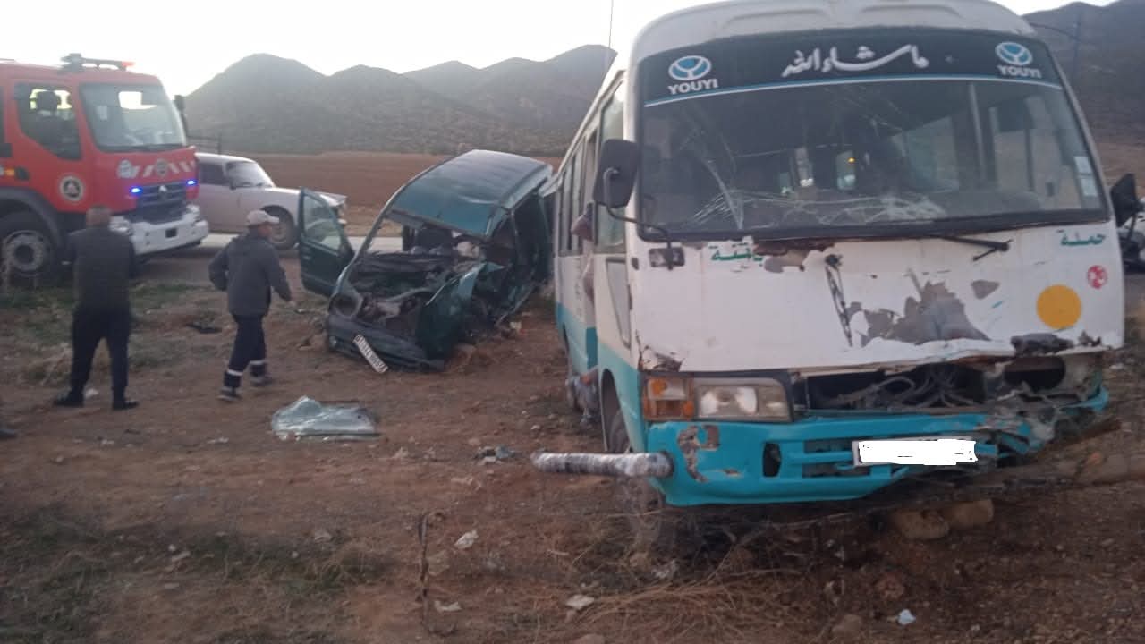 وحسب بيان للحماية المدنية، تدخلت مصالحها على الساعة 16سا55د من أجل حادث إصطدام بين سيارة نفعية و حافلة صغيرة لنقل المسافرين بالطريق الإجتنابي للقطب الحضري بلدية وادي الشعبة، دائرة باتنة.