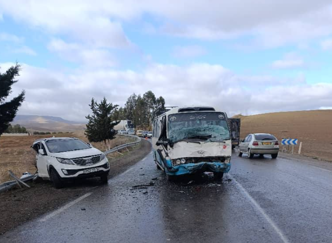 10 ضحايا في في إصطدام حافلة وسيارة بتيارت 30 ديسمبر، 2025 0 147 FacebookTwitterPinterestWhatsApp أصيب 10 أشخاص في حادث مرور تمثل في اصطدام بين حافلة لنقل المسافرين و سيارة على مستوى الطريق الوطني رقم 23 قرية شميط بلدية قرطوفة دائرة رحوية. وفي بيان للحماية المدنية، خلف الحادث إصابة 10 أشخاص تم اسعافهم و نقلهم إلى المستشفى المحلي.
