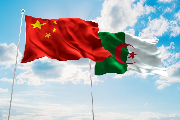 3D illustration of China & Algeria Flags are waving in the sky; Shutterstock ID 416279818; purchase_order: multimedia; job: ; client: ; other: